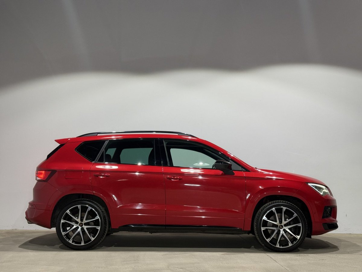 Erleben Sie sportliche Eleganz mit diesem gebrauchten CUPRA Ateca SUV aus 2019. Der leistungsstarke 300 PS Motor mit Allradantrieb und Automatikgetriebe bietet dynamische Fahreigenschaften bei voller Alltagstauglichkeit. Das Fahrzeug präsentiert sich in metallischer Lackierung mit schwarzem Alcantara-Interieur und verfügt über ein Panorama-Glasdach sowie ein digitales Cockpit.